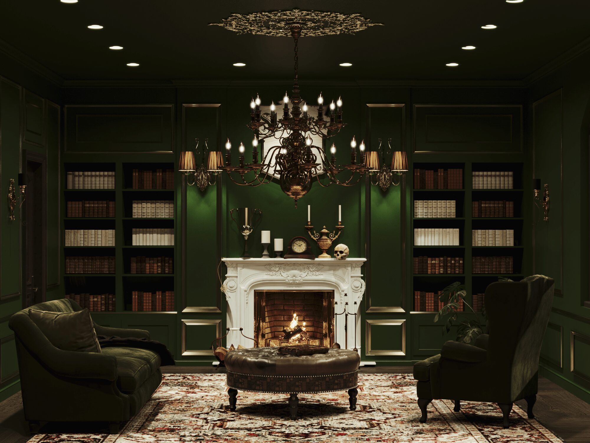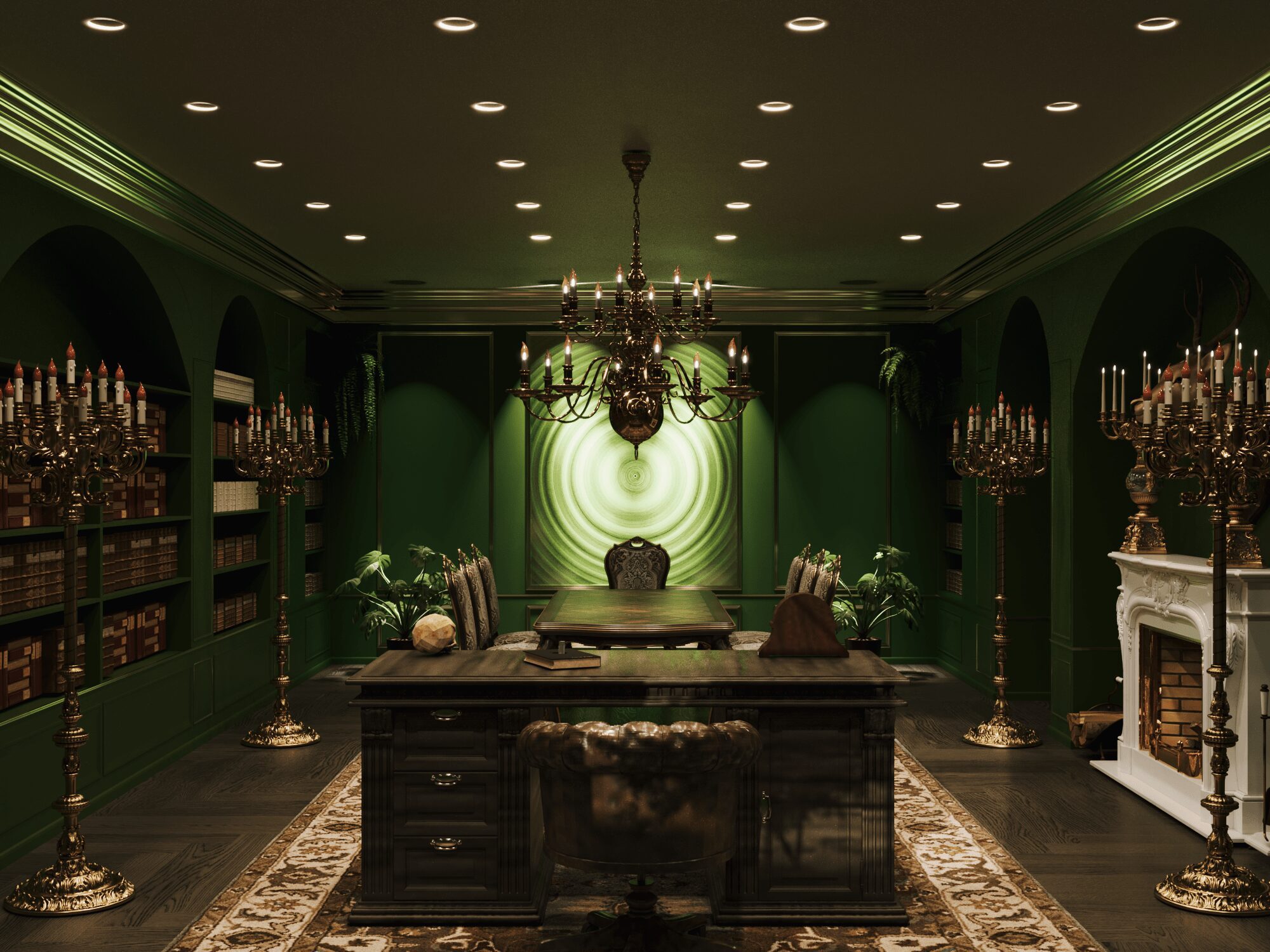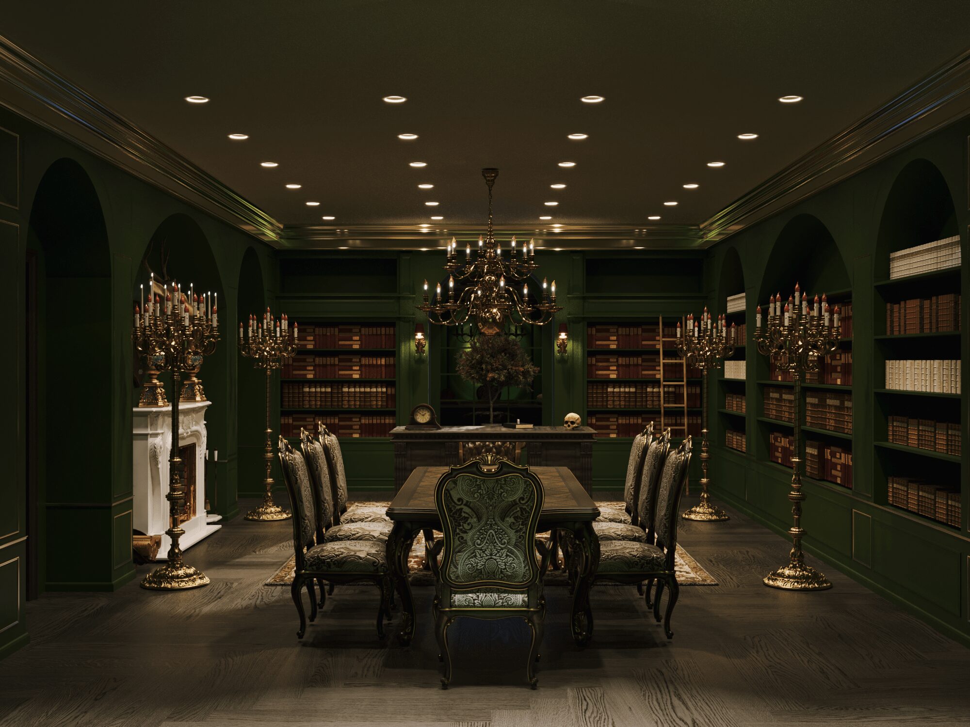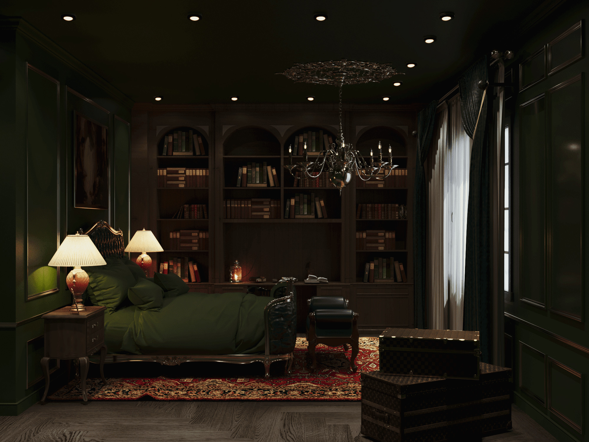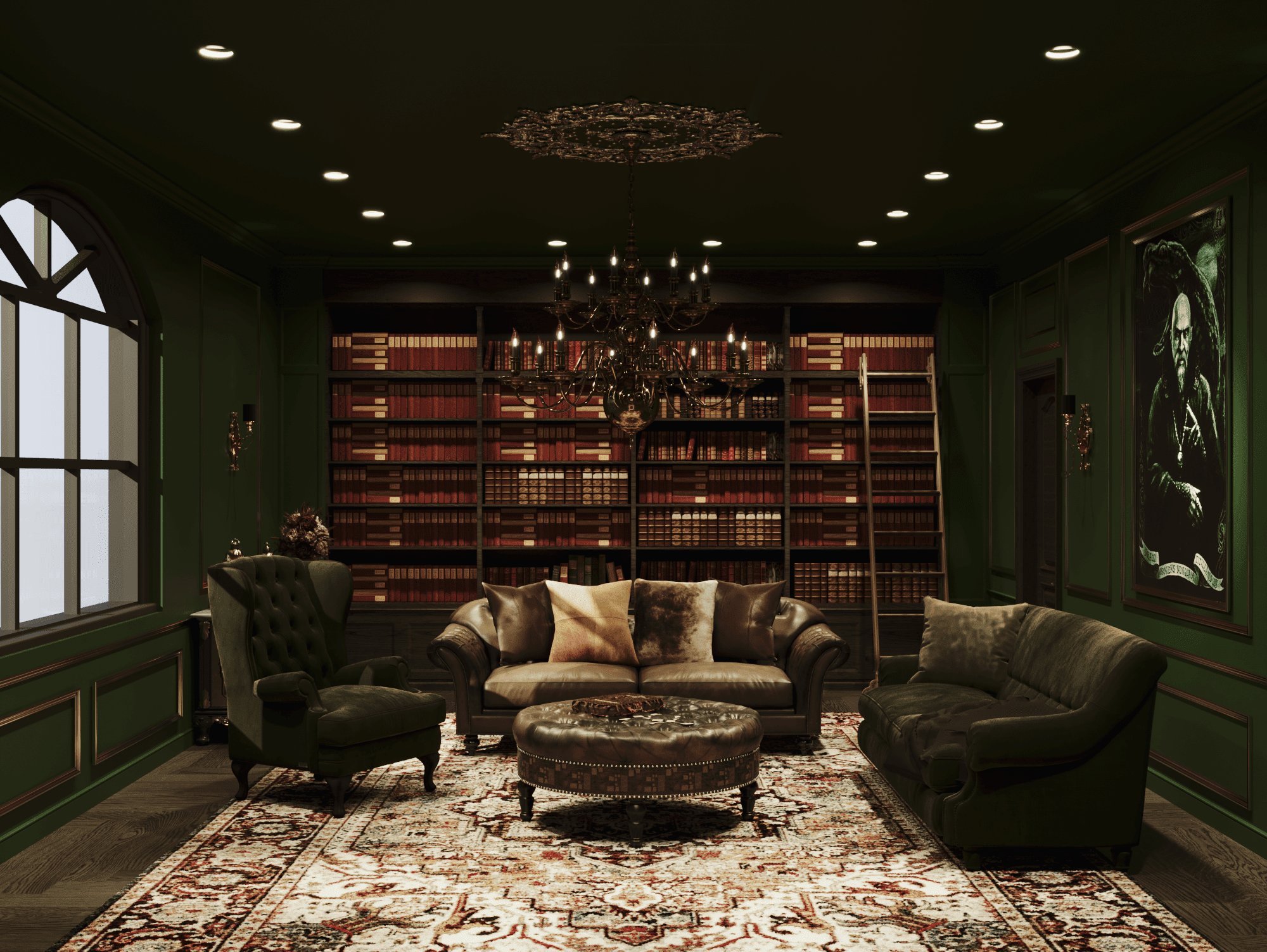 Để đáp ứng tất cả yêu cầu này của Draco Malfoy. Nhật Hoàng đã thiết kế căn nhà theo loại hình biệt thự, có diện tích 592,4m2. Căn biệt thự mang phong cách Dark Academia vừa tri thức, bí ẩn vừa sang trọng và cổ điển. Màu chủ đạo để tạo nên không gian thỏa mãn yếu tố thiên nhiên của ngôi nhà là xanh lá. Kết hợp cùng màu be và nâu theo yêu cầu tone màu tối tạo cảm giác huyền bí.