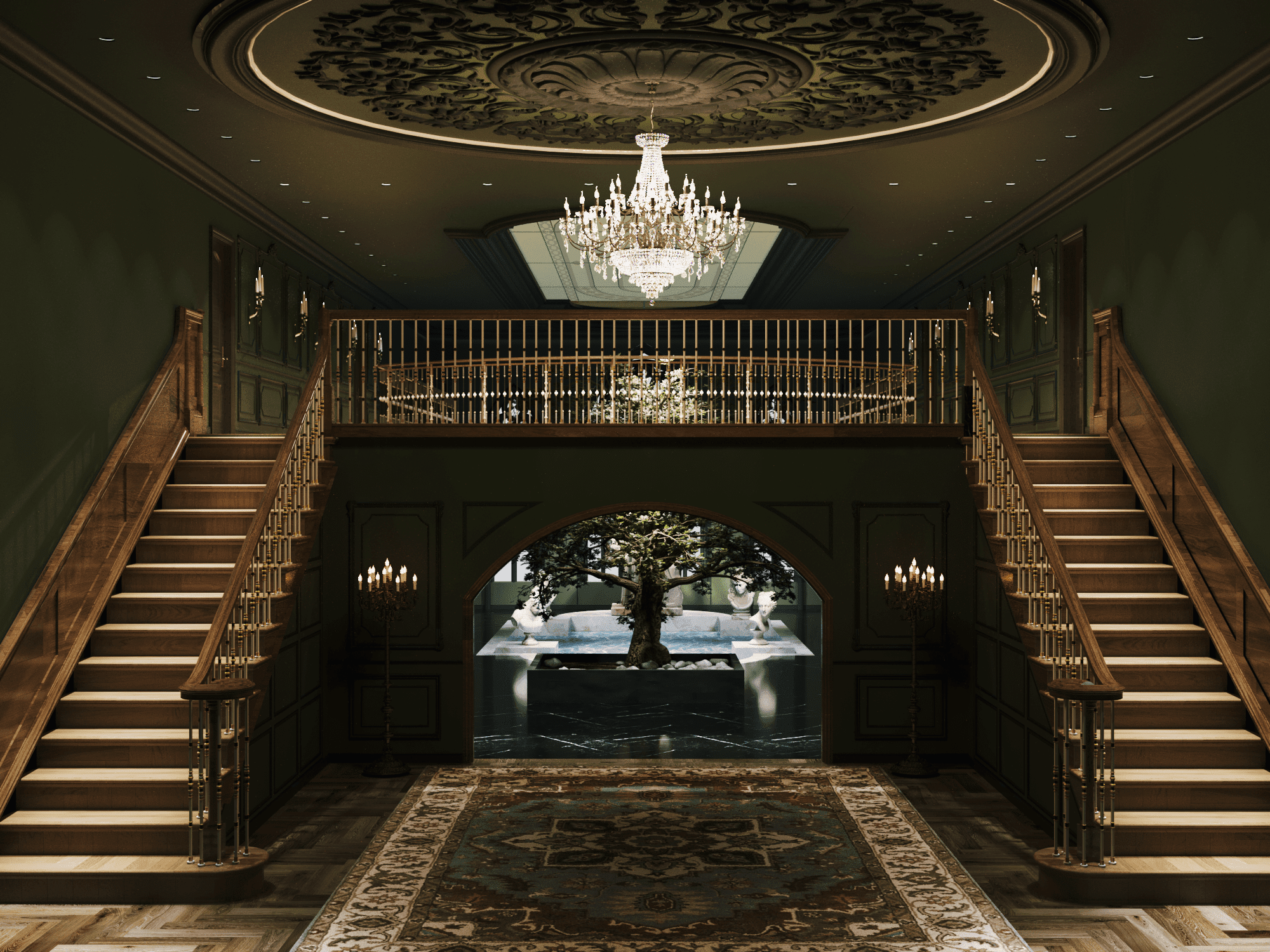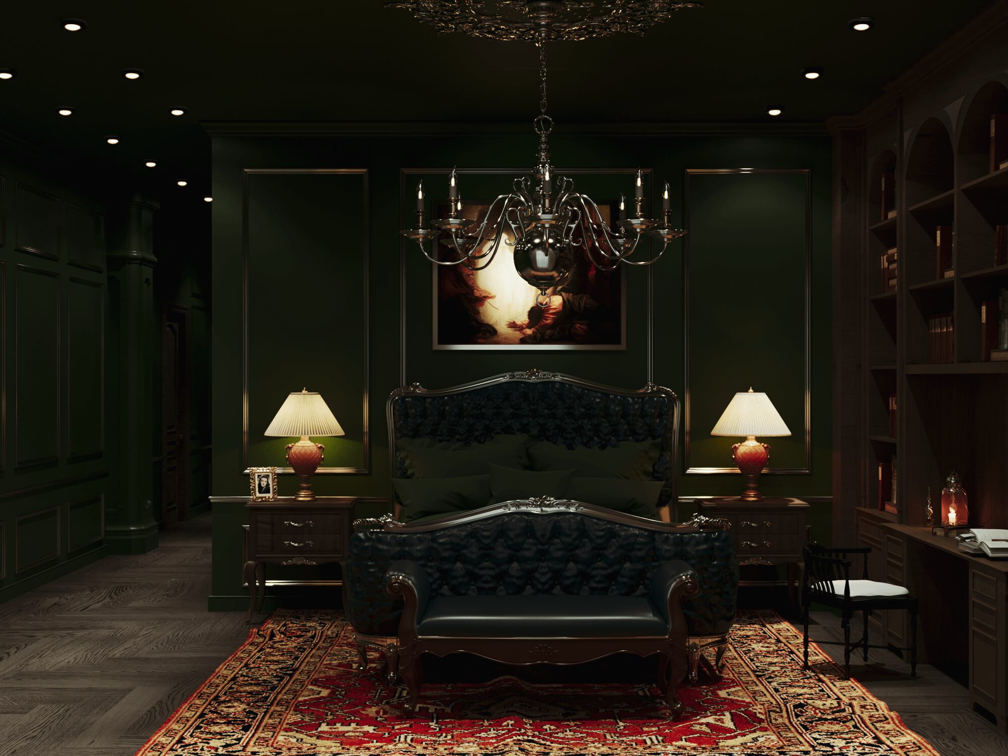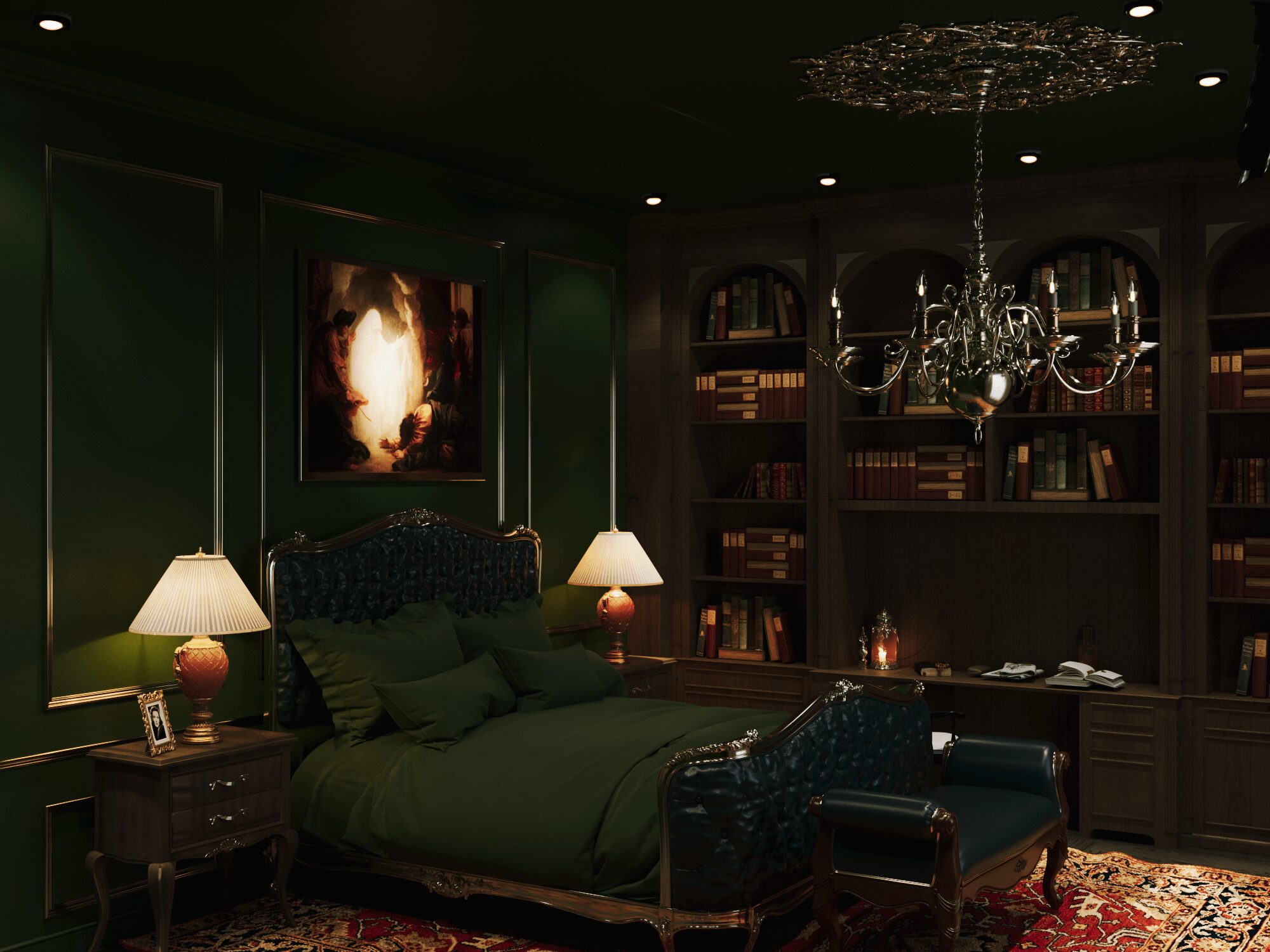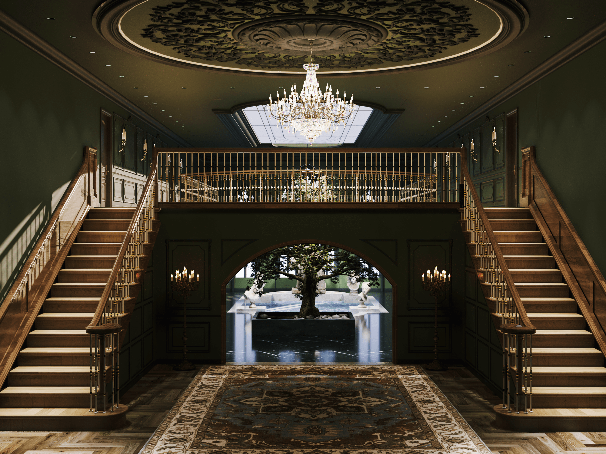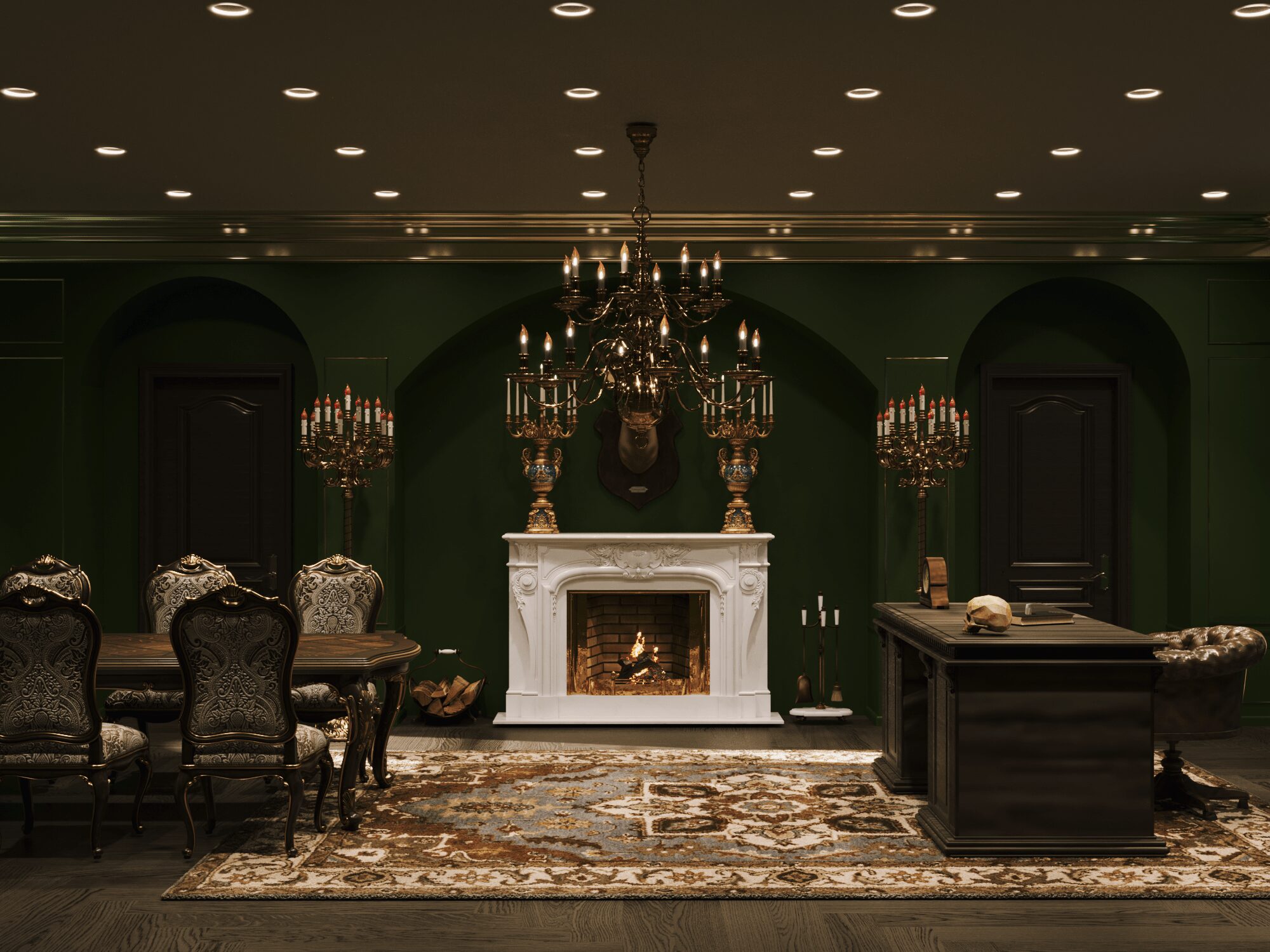 Để đáp ứng tất cả yêu cầu này của Draco Malfoy. Nhật Hoàng đã thiết kế căn nhà theo loại hình biệt thự, có diện tích 592,4m2. Căn biệt thự mang phong cách Dark Academia vừa tri thức, bí ẩn vừa sang trọng và cổ điển. Màu chủ đạo để tạo nên không gian thỏa mãn yếu tố thiên nhiên của ngôi nhà là xanh lá. Kết hợp cùng màu be và nâu theo yêu cầu tone màu tối tạo cảm giác huyền bí.